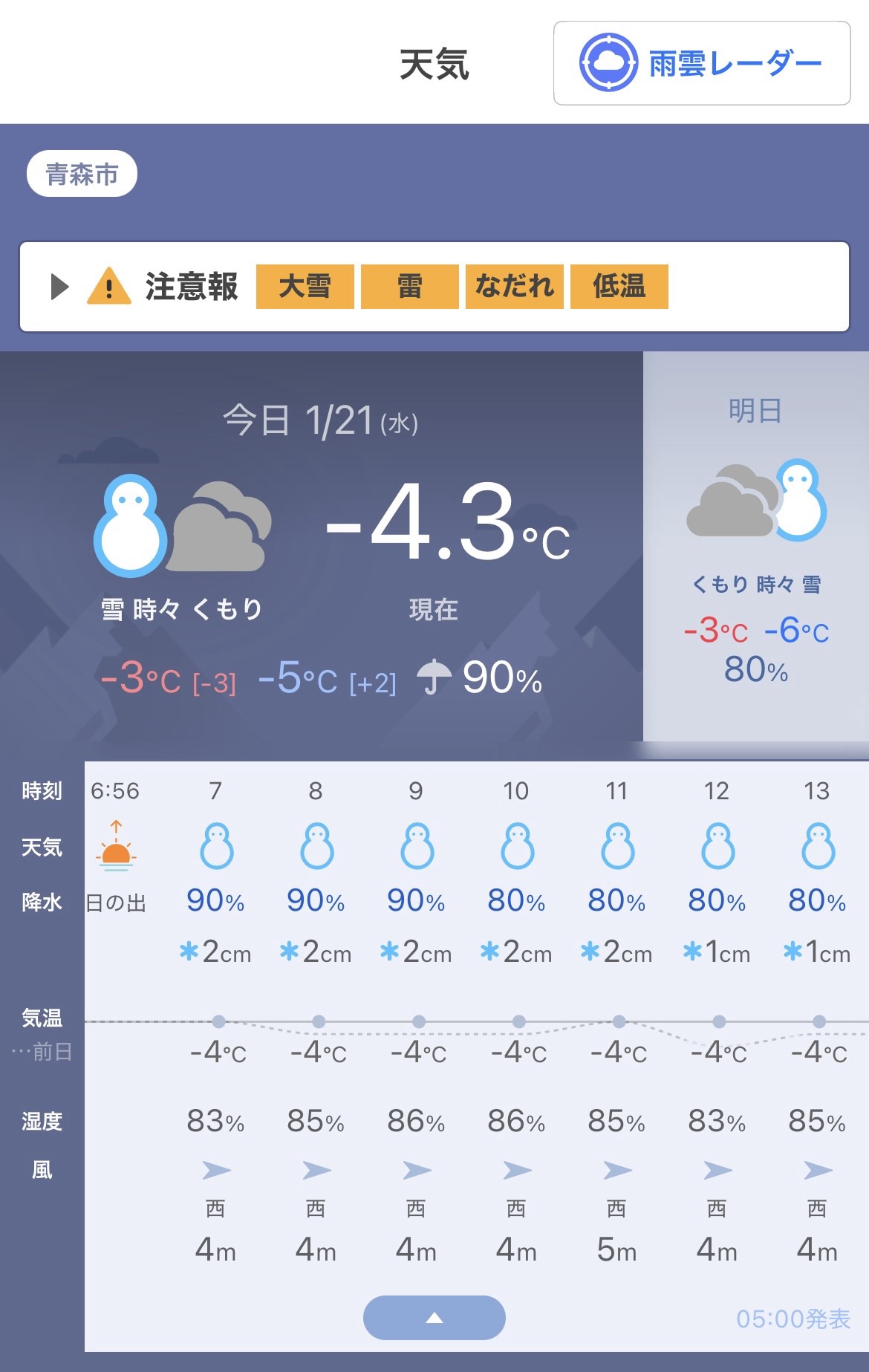 青森はしばらくは氷点下の気温と雪が続きそうです。